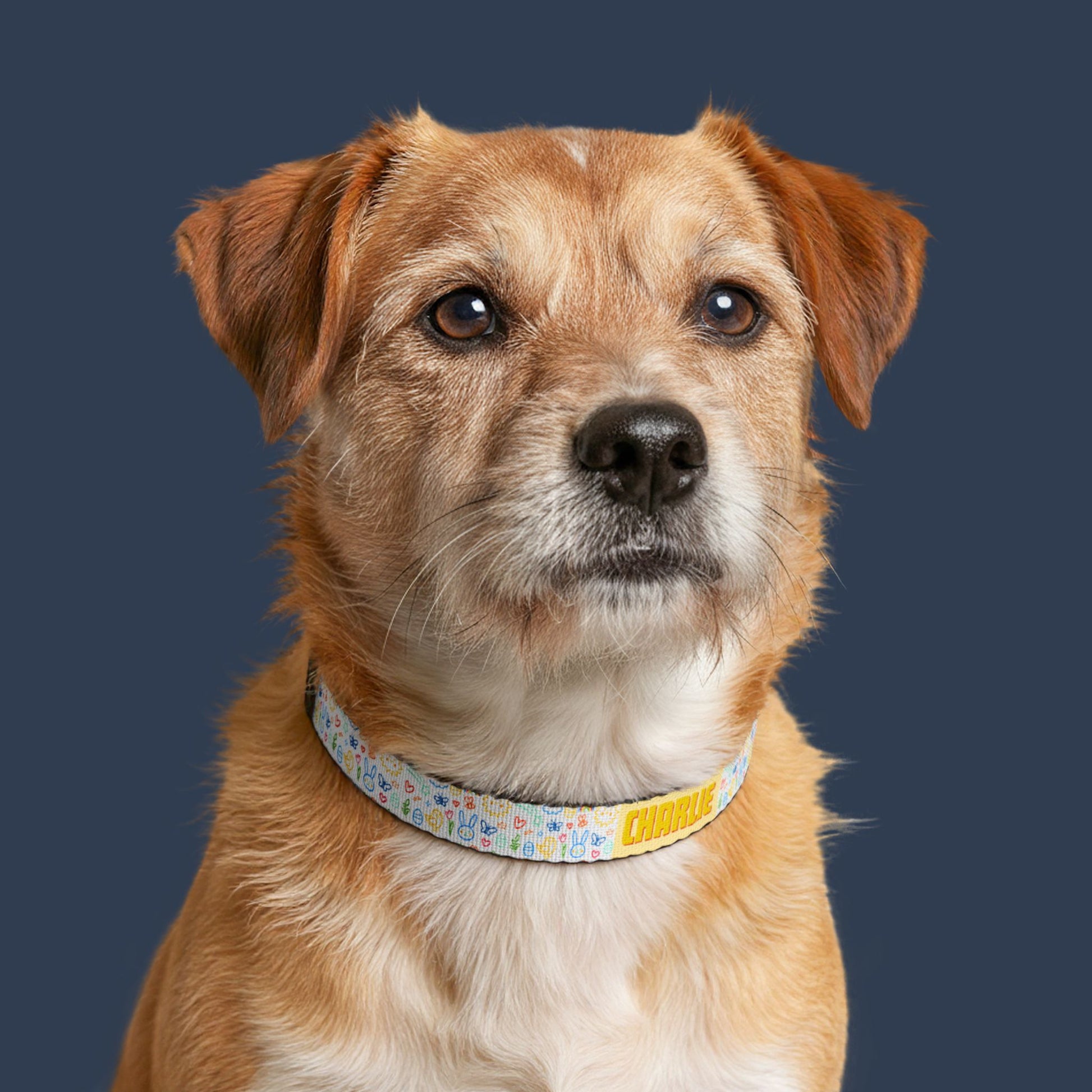 This lightweight clip-on pet collar brings gentle color and everyday durability to your dog’s adventures. Soft polyester webbing printed with a cheerful, watercolor-inspired pattern sits atop heavy-duty black nylon for strength where it counts. The low-profile clip and metal D-ring keep tags and leashes secure without weighing down small necks. It slips on quickly, adjusts to fit, and wears like a trusted companion on neighborhood walks, training sessions, or quiet mornings at home. For pet parents who want something both practical and quietly joyful, this collar blends function with a subtle, handcrafted look that complements any furry friend’s personality.